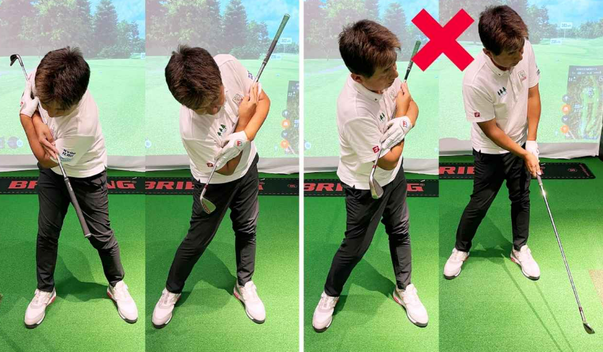 아이언의 올바른 자세는 스윙궤도가 중요한데요. 올바른 스윙궤도는 테이크백에서 대부분 결정됩니다. 테이크백은 골프 스윙의 가장 첫 단계이며 백스윙을 하기 위해 클럽을 뒤로 빼는 동작으로 전체적인 스윙의 궤도와 타구의방향, 구질을 결정하는 계기가 되는 스윙 구간입니다. 손목과 팔의 쓰임이 없이 어드레스에서 생긴 상체각을 유지하며 상체의 회전만으로 팔과 클럽을 이동 시킵니다. 이는 백스윙 아크를 크게 만들고 타구 방향의 일관성을 유지하는 데 도움을 줍니다. 어드레스에서 클럽헤드를 목표 방향에 직각으로 정렬하고 테이크백 시 손과 클럽헤드가 몸 뒤쪽으로 벗어나지 않도록 하며, 이때 손목의 움직임을 최소화하며 몸의 회전으로만 스윙합니다. ※ 초보자 분들이 가장 많이 실수 하시는 부분이 손이 몸에서 멀어지고 클럽헤드..