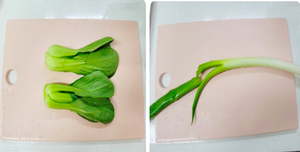 3. 청경채2~4포기의 밑동을 잘라줍니다. 대파1대를 잘게 다져줍니다.