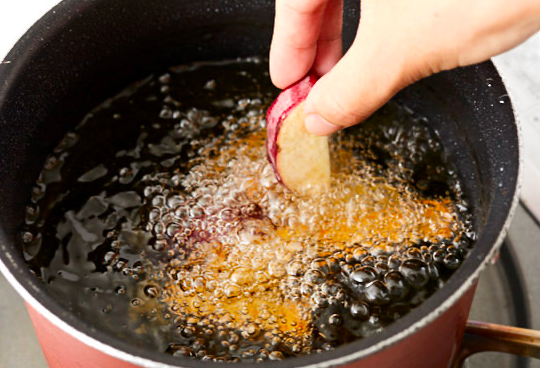 고구마를 냉동 상태로 냄비에 넣어 튀기면 고구마의 '따끈따끈' 함을 유지할 수 있습니다.