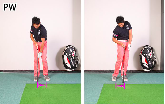 기본적으로는 다른 클럽과 같습니다만, 한 가지 크게 다른 것이 스탠스의 폭입니다. 스탠스는 클럽이 길어질수록 넓어지고 반대로 짧아질수록 좁아집니다. 따라서 드라이버와 웨지는 이동하는 거리에 큰 차이가 생깁니다.
