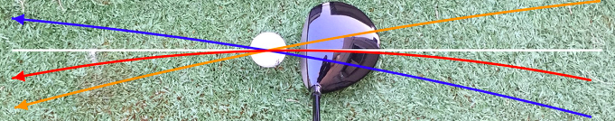 위의 ①②내용으로 되면…드라이버의 궤도가, 아웃사이드 인이 되어, 사이드 스핀이 걸려 오른쪽으로 돌아 버립니다.