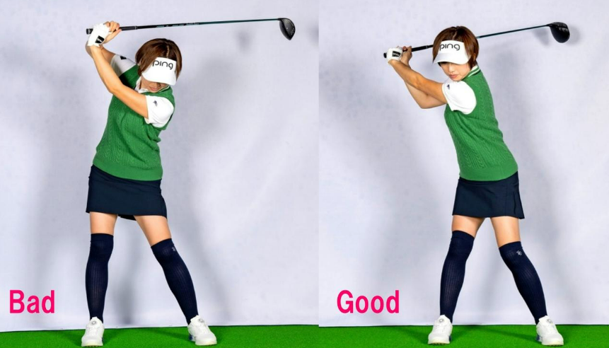 "골반이 앞으로 기울어지는 각도를 바꾸지 않고 백 스윙에서 오른쪽 엉덩이를 위로 하여 의자 등받이를 밀고 왼쪽 엉덩이로 의자 등받이를 다음과 같이 누릅니다.