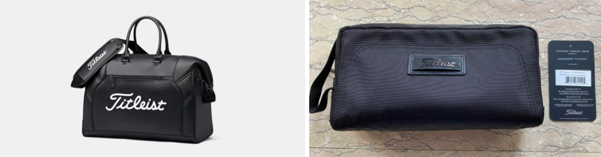 라운딩을 하게 되면 땀이 나는 경우가 많습니다. 보스턴백은 갈아입을 옷이나 신발, 세면도구 같은 것을 넣어가는 가방입니다. 보통은 골프장을 갈 때 평상복을 입고 가서 골프웨어로 갈아입는 경우가 대부분이라 갈아입을 옷과 신발을 보관할 보스턴백이 필요합니다. 보스턴백은 탈의실로 챙겨가서 옷을 갈아입고, 그대로 락커 안에 보관하고 나오시면 됩니다. 미니 파우치는 라운딩 할 때 들고 다니는 건데요. 이 안에는 휴대폰, 골프티, 볼 마커, 선글라스, 핫팩, 차 키, 물이나 간식 등 개인 소지품을 넣고 다니시면 됩니다.