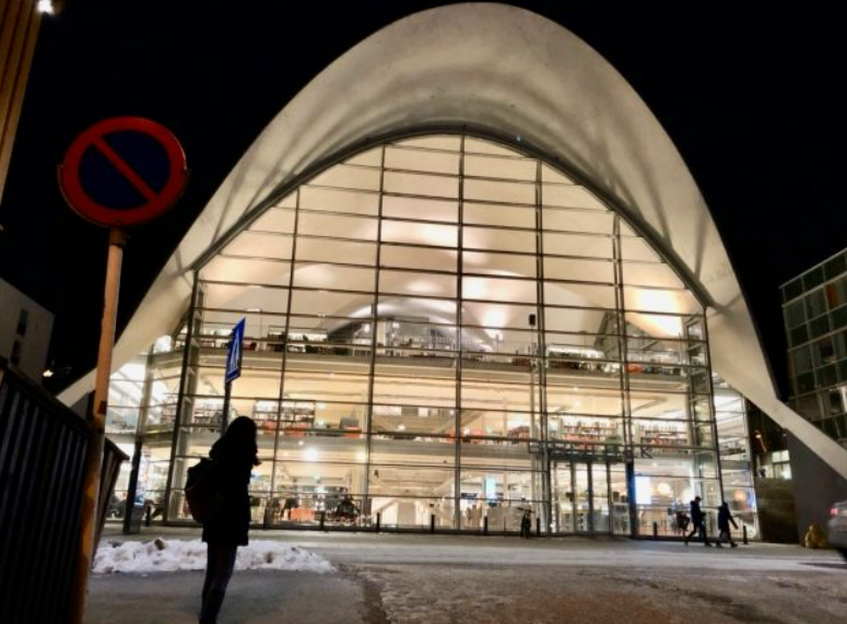 스칸디나비아에서 도서관은 교회, 박물관과 함께 꼭 가봐야 할 곳입니다. 영어로 "Tromsø City Library and Archive"라고 쓰여진 Tromsø City Library는 주먹밥 모양의 외관을 보입니다. 상어같기도 하죠? ^^고래?
