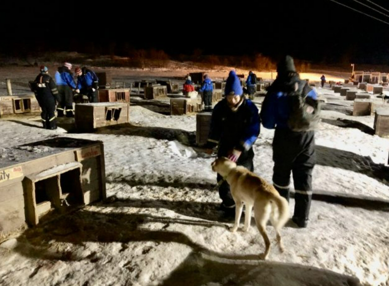 오로라가 나타나기를 기다리는 동안 그룹으로 나뉘어 허스키와 상호 작용할 때입니다. 300개의 허스키 오두막이 줄지어 서 있는 광경은 볼만한 광경입니다!