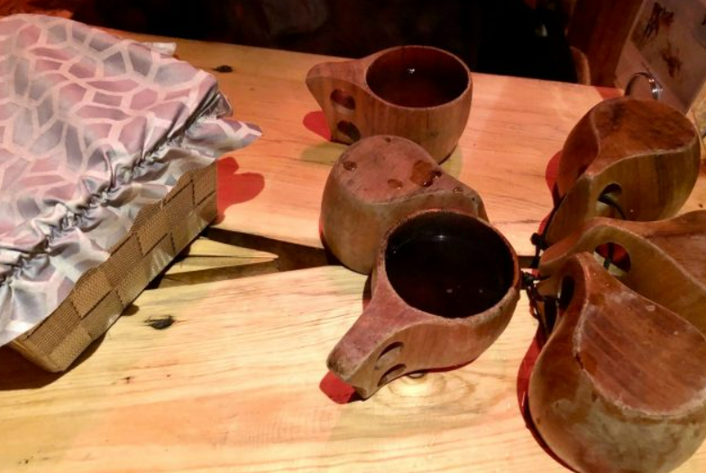모닥불과 따뜻한 음료 (커피 또는 차를 선택할 수 있음)제공. 사미족 전통 공예품인 "쿠쿠사(Kukusa)"의 나무 컵으로 건배^^