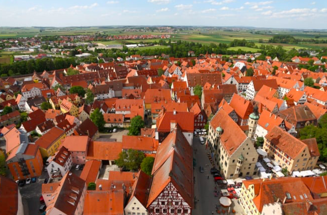 약 89m 위에서 거리를 내려다볼 수 있는 다니엘 탑, 거리 중심부에 위치한 성 게오르그 교회, 붉은 주황색 지붕의 집들이 귀여운 마르크트 시장, 아폴로 우주인들도 훈련차 찾은 리스크레이터 박물관 등 작은 거리이면서도 볼거리가 많습니다!