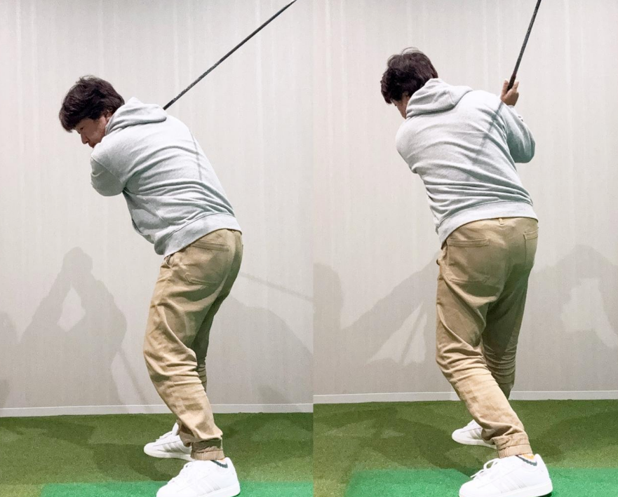 몸으로 치는 가장 중요한 것은 큰 백스윙입니다. 등과 엉덩이가 목표 방향을 향하도록 몸을 제대로 회전시키는 것 같습니다. 어깨와 겨드랑이, 엉덩이를 오른쪽에서 당기고 돌리는 것으로, 큰 백스윙을 할 수 있습니다.