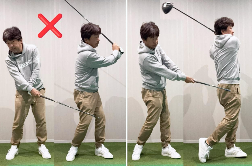 몸으로 치는 가장 중요한 것은 큰 백스윙입니다. 등과 엉덩이가 목표 방향을 향하도록 몸을 제대로 회전시키는 것 같습니다. 어깨와 겨드랑이, 엉덩이를 오른쪽에서 당기고 돌리는 것으로, 큰 백스윙을 할 수 있습니다.