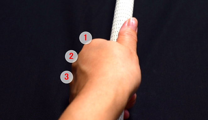 어드레스를 했을 때 자신의 너클(주먹)이 3개 보이도록 그립해 보세요.