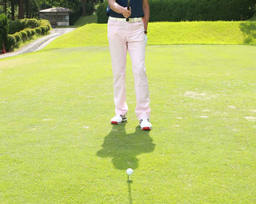볼과 타겟이 겹쳤을 때 샤프트를 똑바로 내리면 그대로 타겟 라인이 되고, 사진과 같이 몸의 바로 뒤에서 햇빛이 비추면 샤프트의 그림자도 참고할 수 있습니다.