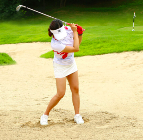 모래를 많이 파서 공이 앞으로 나가지 않는다면 오른쪽 어깨를 떨어뜨리지 않게 점검해 봅시다.