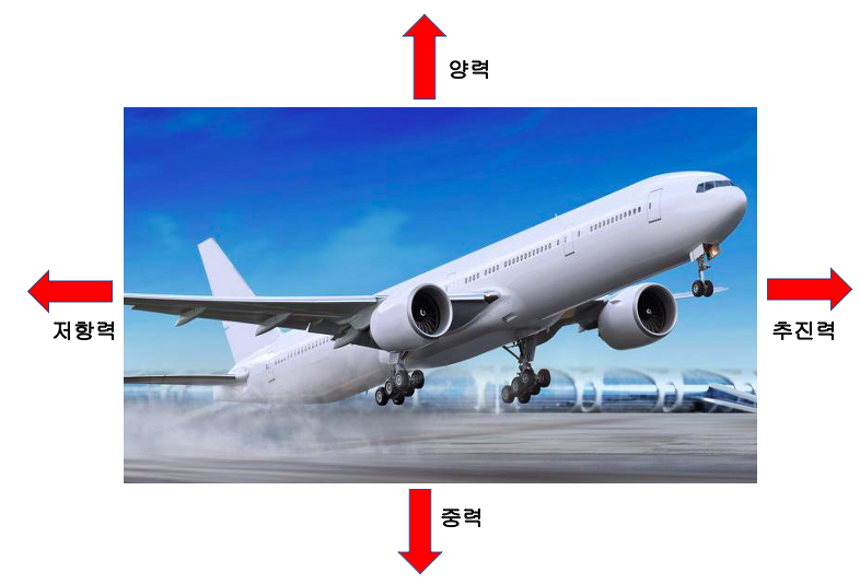 비행기가 날아 가기 위해서는 하기 4가지의 힘이 필요하며 영향을 받습니다.