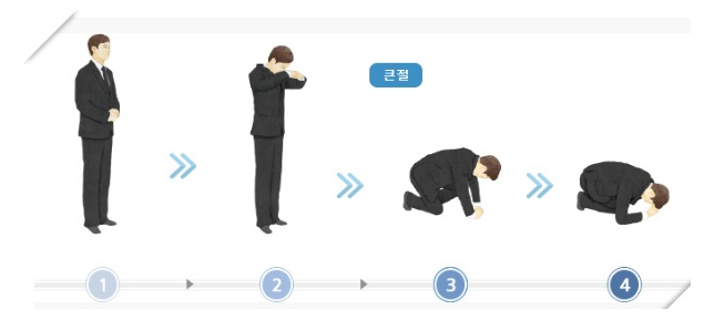 남자 큰절은 먼저 공수를 하고 손을 이마부분까지 올린 다음 무릎을 꿇고 절하는 방법입니다. 제일 기본적이고 간단해보이지만 막상 상가집 방문시에는 헷갈릴 수 있으니 꼭 기억하세요.