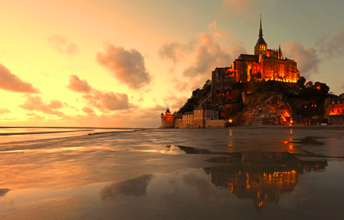몽상미셸은 성이 아니라 가톨릭 수도원 입니다. 708년 주교 앞에 대천사 미카엘이 나타나 이곳을 건조하라고 전해진 것이 시초라고 합니다. 14세기 영불백년전쟁에서는 난공불락의 성채로서 전화를 견뎌냈습니다. 주요 부분은 고딕 양식의 건축이지만 오랜 역사 속에서 복원을 거듭하고 다양한 유럽 건축 양식을 도입한 점도 높이 평가받고 있습니다.