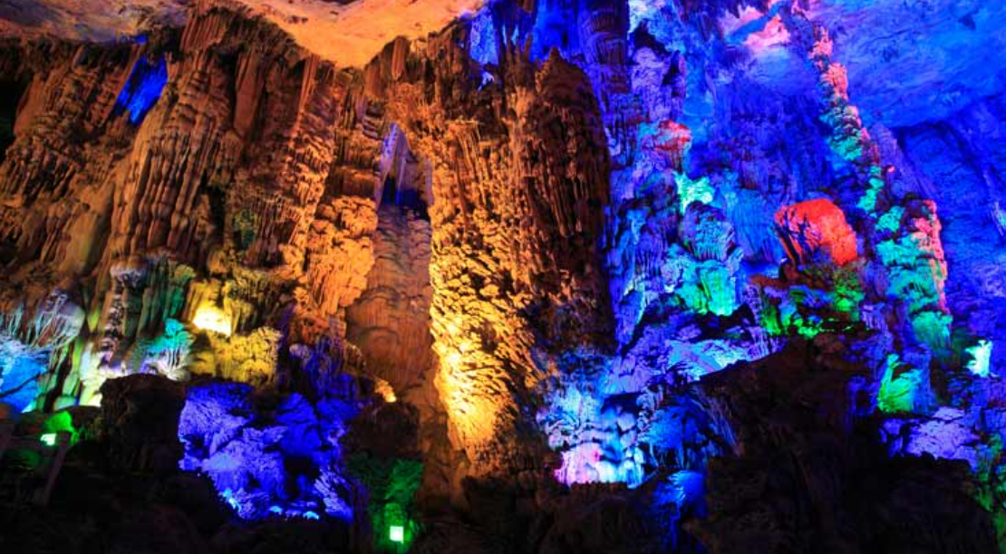 중국 구이린의 관광 명소. 자연이 낳은 독특한 세계관과 화려한 일루미네이션은 일루미네이션을 좋아하는 사람 필견! 동굴 안에는 8세기경에 쓰여졌다고 전해지는 시가 있습니다.