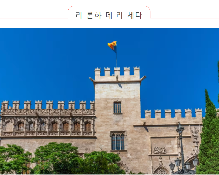 세계 문화 유산 인 "La Lonja de la Seda"는 발렌시아가 경제적으로 많이 발전 한 15 세기 후반에 지어진 실크 상품 거래소입니다. 스페인을 대표하는 고딕 양식의 건물은 성처럼 보입니다. 건물 내부의 하이라이트로는 특이한 나선형 기둥이 있는 "코버넌트 룸"과 천장에 멋진 목공예 조각이 있는 "해양 영사의 홀"이 있습니다.