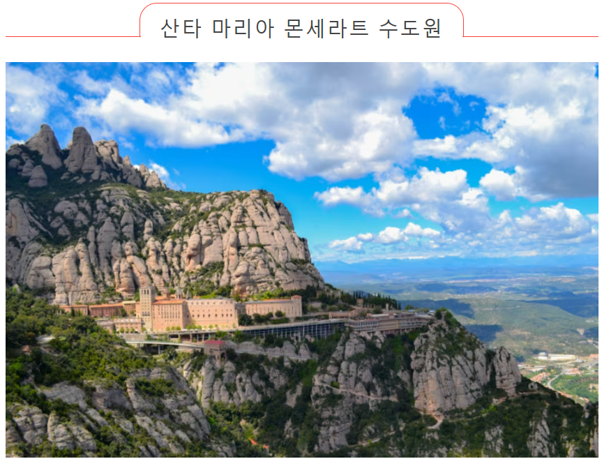 바르셀로나 외곽에 위치한 몬세라트 산에는 11세기에 지어진 수도원이 있습니다. 대성당에 안치된 블랙 마돈나 동상을 꼭 방문해 보세요. 몬세라트에 가려면 에스파냐 광장 역에서 기차를 타고 몬세라트에서 내린 다음 로프웨이로 갈아타면 됩니다. 시간적 여유가 있다면 전망이 좋은 산 정상에 갈 수도 있습니다.