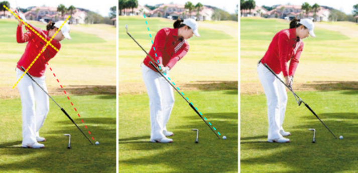 어깨'만' 회전하면 상체 회전이 불안정해 다운스윙부터 팔로스루까지의 회전이 덜 이루어지게 되어 아웃-인 궤도가 만들어지게 됩니다.