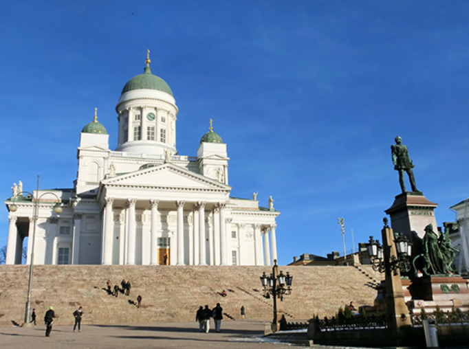헬싱키의 상징인 헬싱키 대성당은 꼭 봐야 할 곳으로 ,오른쪽 동상은 전 러시아 황제 알렉산더 2 세의 동상입니다.