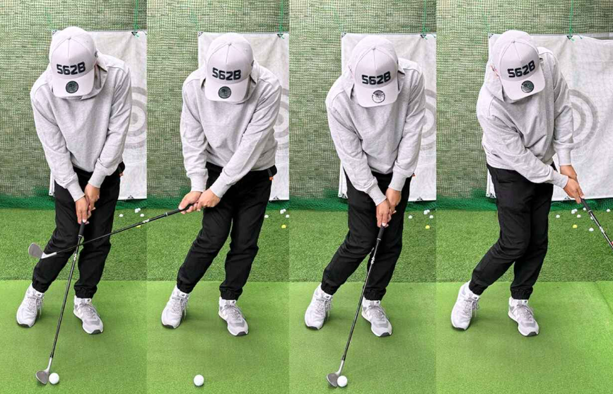 실제로 해보시면, 예상보다 계속 몸을 회전하지 않으면 안 된다는 것에 놀라실수 있습니다^^ 핸드 퍼스트인 채 임팩트를 맞이하여 임팩트 후에도 몸이 타겟 방향을 향할 때까지 돌지 않으면 샤프트가 허리에 닿습니다.