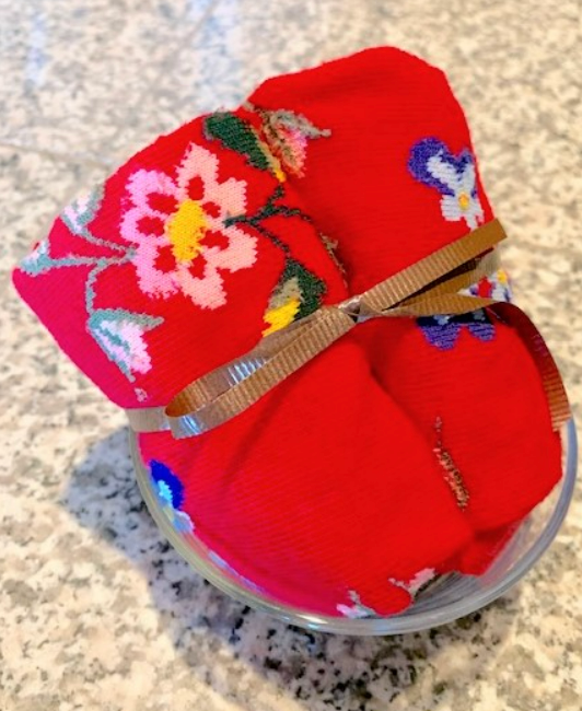 이쪽도 거리에서 자주 볼 수 있는 아이템입니다. 조금 복고풍 분위기가 귀엽고, 한국에서는 볼 수 없는 맑고 밝은 색감도 포인트입니다. (꽃무늬 자수 양말 5€: 판매 품목 가격)