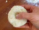 7. 반죽을 8개로 나누어 볼 모양으로 만들고 엄지와 중지로 고리를 만드는 느낌으로 가운데 구멍을 뚫어 줍니다.