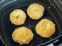 9. 200도에서 3분 여열한 에어프라이기에 오븐시트를 깔고 반죽을 올려 기름을 솔로 바릅니다. . 200℃에서 7분 굽습니다.