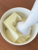 2. 스틱 블렌더로 두부를 크림상태로 만듭니다.