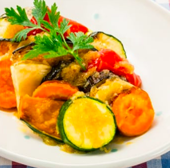 2. 가지, 호박, 당근은 두께 7~8mm의 둥글게 썬다. 감자, 호박은 3~4mm 두께의 얇게 썰고. 빨강 파프리카는 한입 크기로 자릅니다.