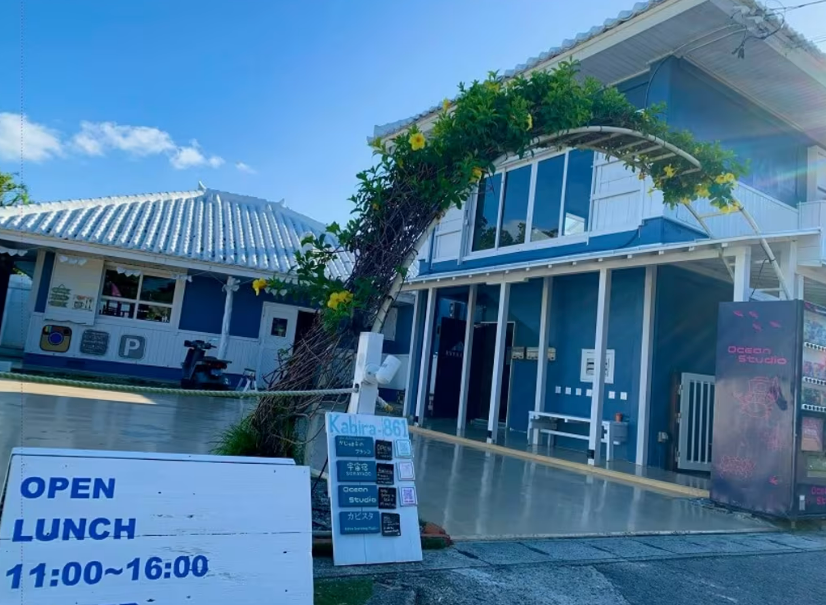 카비라만에서 걸어갈 수 있는 다이빙 숍 오션 스튜디오에 병설된 「숲과 바다」를 테마로 한 레스토랑. 안뜰에 나무에 매달린 그네가 그네를 타는 치유의 공간에서 점심을 즐길 수 있습니다. 가장 인기 있는 것은 푹신푹신한 계란을 얹고 수제 데미글라스 소스를 얹은 오믈렛 밥입니다. 이시가키 소고기와 아구 돼지고기 등 이시가키 섬의 식재료를 끼워 넣은 오픈 샌드위치도 먹을 수 있습니다. 음료를 테이크 아웃하여 카비라 만의 절경을 즐기는 것도 추천합니다.