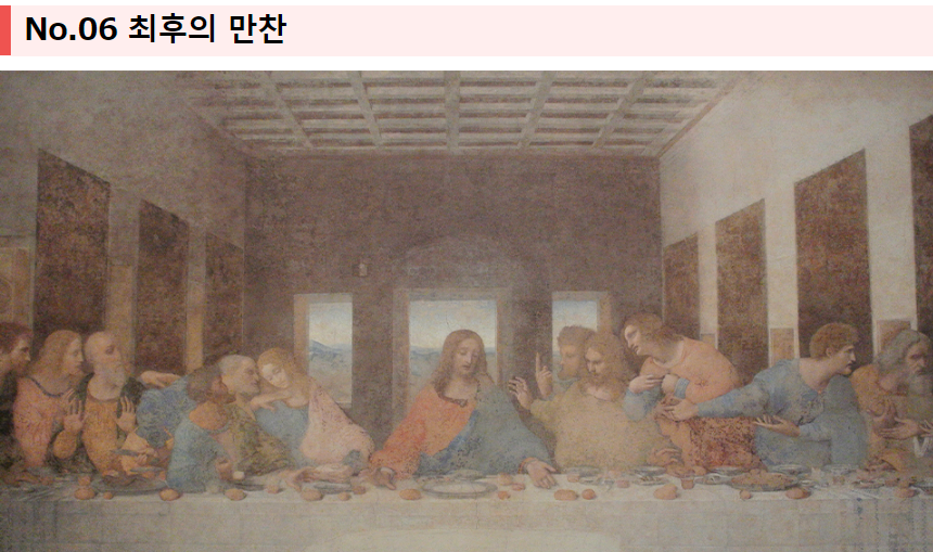 15세기 후반에 레오나르도 다빈치가 완성했다고 전해지는 벽화입니다. 기독교 성경에 따르면 예수 그리스도께서 마지막 날에 "열두 제자 중 하나가 나를 배반할 것"이라고 예언하신 장면이 묘사되어 있습니다. 약 500 년 동안 살아남았지만 심하게 손상되어 있기 때문에 "기적의 그림"이라고 불립니다. 밀라노의 "산타 마리아 델레 그라치에 교회" 옆에 있는 식당으로, 예약제로만 방문할 수 있습니다. 예약이 어려우니 가능한 한 빨리 온라인으로 수속을 완료하는 것이 좋습니다.