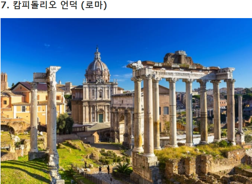 캄피돌리오 언덕은 로마의 7개 언덕 중 가장 큰 언덕으로, 고대 도시 이탈리아 로마의 기초를 형성했다고 합니다. 로마 신화의 주신인 주피터 등의 신전이 있던 곳으로, 현재는 로마 시청 등 정치·행정 기관이 모이는 중요한 장소로 알려져 있습니다. 캄피돌리오 언덕의 꼭대기는 미켈란젤로가 설계한 캄피돌리오 광장으로 이탈리아를 방문하는 많은 관광객들의 주요 관광 명소가 되었습니다.