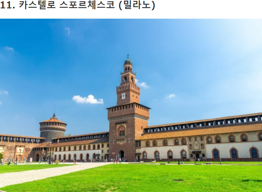이탈리아 밀라노의 스포르체스코 성은 1450년 밀라노 공작 프란체스코 스포르차가 비스콘티 가문의 개조된 성에 지은 성채입니다. 이탈리아의 유명한 예술가 레오나르도 다빈치도 건축에 참여했다고합니다.