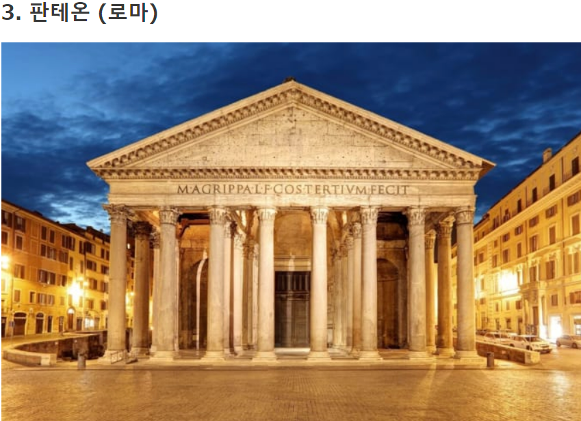 이탈리아 로마의 인기 있는 관광 명소 중 하나인 판테온은 약 2,000년 전에 지어졌습니다. 판테온은 매우 단순한 디자인이지만 장엄한 분위기의 석조 건물로 유명한 이탈리아 예술가 미켈란젤로가 "천사의 디자인"이라고 칭찬했을 정도입니다.