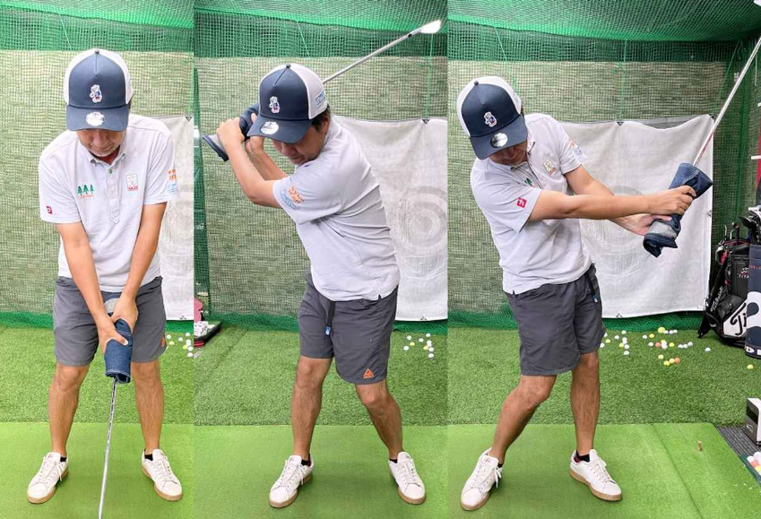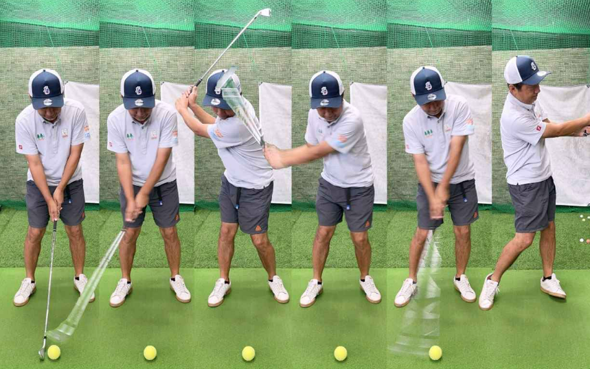 골프공이 테니스공으로 바뀌기만 하면 스윙이 바뀌는 건가요? 라고 생각합니다만, 실제로 해 보면 확실히 힘이 없이 끝까지 스윙을 할 수 있어요. 골프공으로도 이 정도 힘없는 임팩트가 생기면 구근이 안정되고 비거리도 늘어난다고 프로는 말합니다.
