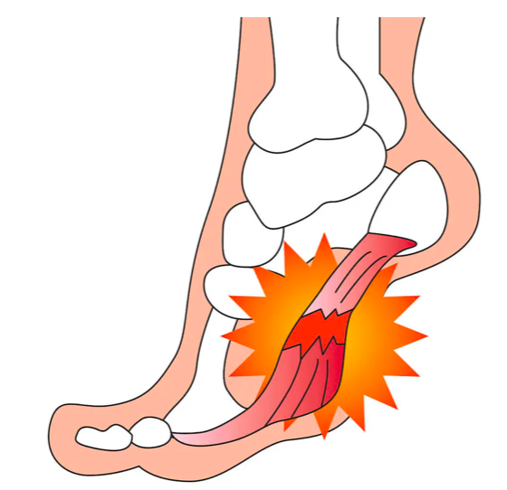 그러나 마라톤이나 뛰어다니는 운동처럼 발바닥에 강한 압력과 자극을 계속 가함으로써 족저근막을 형성하는 콜라겐 조직이 손상될 수 있습니다. 또한 족저근막에 부하가 계속 걸리면 탄성을 잃어 너무 딱딱해질 수도 있어서 '족저 근막염'에 염증이 생겨 통증을 느끼게 되는 것입니다. 족저근막염은 기상 시에 강한 통증을 느끼기 쉬운 것도 특징 중 하나입니다.