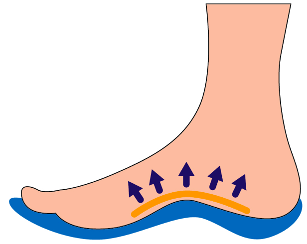 깔창을 장착하거나, 더 두꺼운 깔창으로 변경함으로써, 족저근막에 부하를 분산시켜 부담을 줄일 수 있습니다.