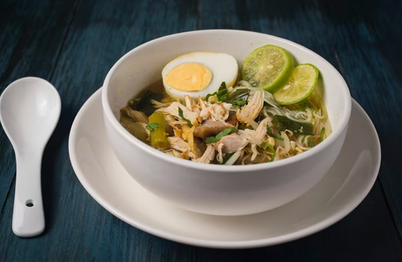 인도네시아 수프 요리를 대표하는 요리. 국물은 레몬그라스, 귤 잎, 강황, 생강과 같은 향신료와 허브를 듬뿍 넣어 만듭니다. 재료에는 잘게 썬 생 양배추, 당면, 파, 토마토가 포함됩니다.