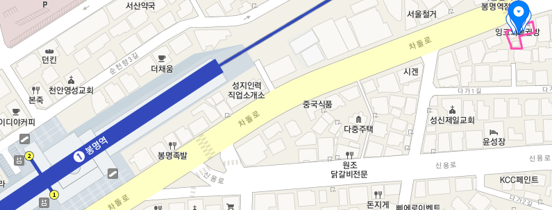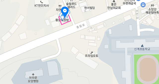 주소 : 충남 천안시 동남구 다가동 352-7(농협은행 봉명지점에서 봉명역 방향으로 100m)