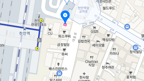 주소 : 충남 천안시 동남구 대흥동 123-1(천안역 1번출구 근처에 지하상가 입구 맞은편)