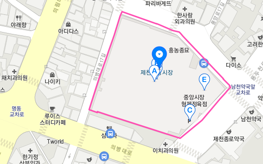 주소 : 충북 제천시 중앙로 1가 77(제천 중앙시장 남천약국 교차로)
