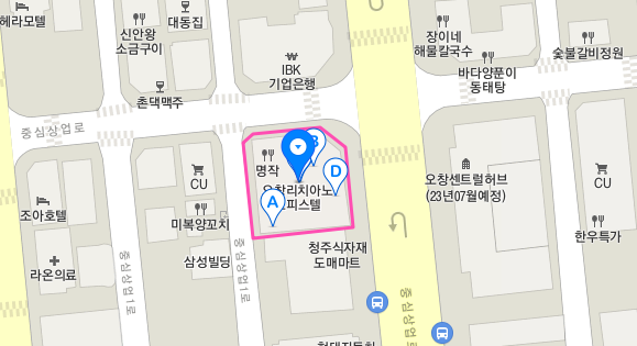 주소 : 충북 청주시 청원구 오창읍 양청리 792-1 (산업은행 오창지점 1층)
