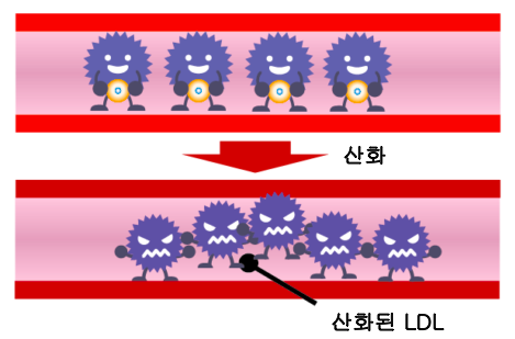 혈중의 나쁜 콜레스테롤은 활성 효소에 의해 산화되어 안좋은 콜레스테롤(통칭:산화LDL 콜레스테롤)로 변화되어 버립니다.