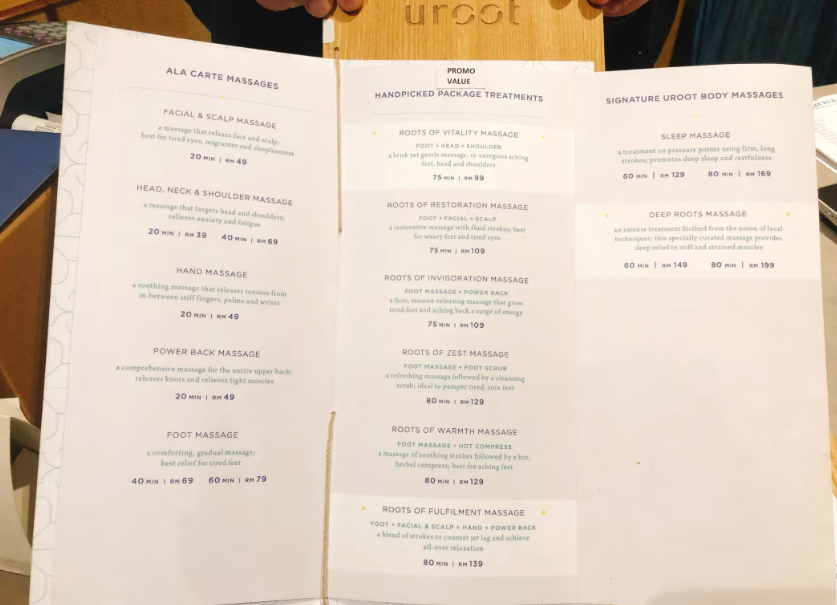 이번에는 발 + 머리 + 어깨 마사지가 포함 된 ROOT OF VITALITY MASSAGE 99RM (약 2만5천원)을 선택해보세요^^