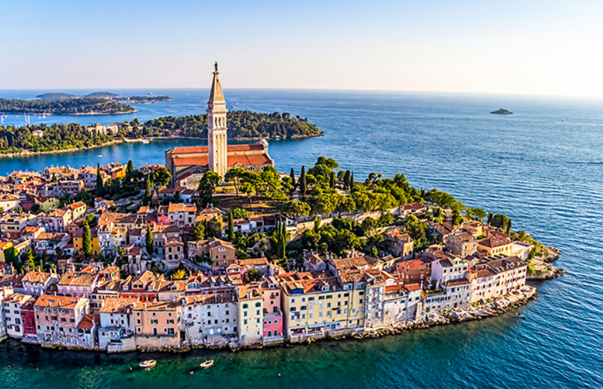 로빈은 이스트리아 반도 남서부에 있는 작은 항구 도시입니다. 베네치아의 지배를 받던 시절에 크게 발전했으며, 교회의 종탑 주위에 펼쳐지는 거리 풍경은 베네치아 분위기를 자아냅니다. 인상적인 구시 가지는 많은 부풀어 오르기로 솟아 오른 언덕에 위치하고 있습니다. 어두워지면 은은하게 라이트 업되어 떠 있는 바다 풍경이 있는 유럽에서 가장 로맨틱한 도시로 알려져 있습니다.