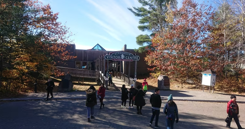 동쪽과 서쪽에 있는 한 게이트에서 입장료를 지불한 다음 60번 고속도로♯를 따라 위치한 Algonquin 방문자 센터로 향합니다. Algonquin Provincial Park의 1993주년을 기념하기 위해 100년에 지어졌습니다.