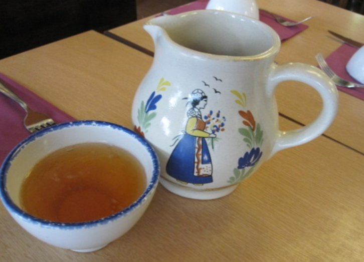 자리에 앉으면 먼저 음료를 주문하되, 크레이프 가게에서는 브르타뉴 특산품인 사과주를 꼭 주문하세요. 단맛(매운맛)과 두(단맛)의 2종류가 있지만, 술을 싫어하는 사람이라면 마시기 쉽기 때문에 단맛을 추천합니다