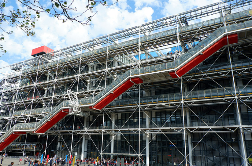 퐁피두 센터는 파리에서 가장 오래된 지역 중 하나에 위치한 거대한 박물관입니다. 실내 공간을 최대한 활용하기 위해 모든 파이프와 엘리베이터는 색상으로 구분되어 실외에 설치됩니다.