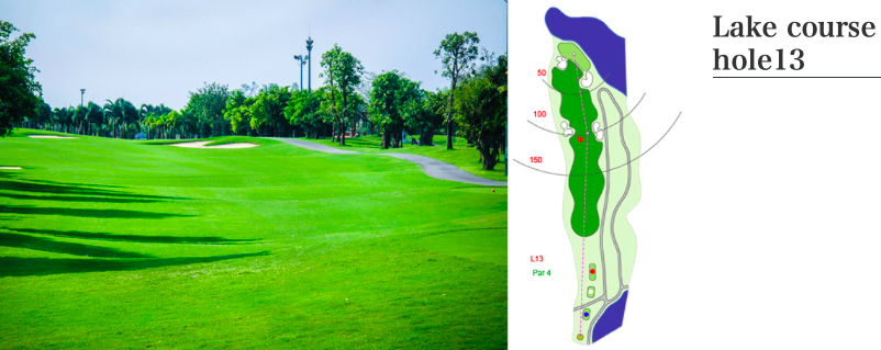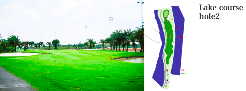 7,127야드 Par72. 호숫가 경관이 아름다우며 12번홀을 제외한 모든 홀에 연못이 얽힌 '레이크 코스난이도가 높고 전략적인 코스입니다.